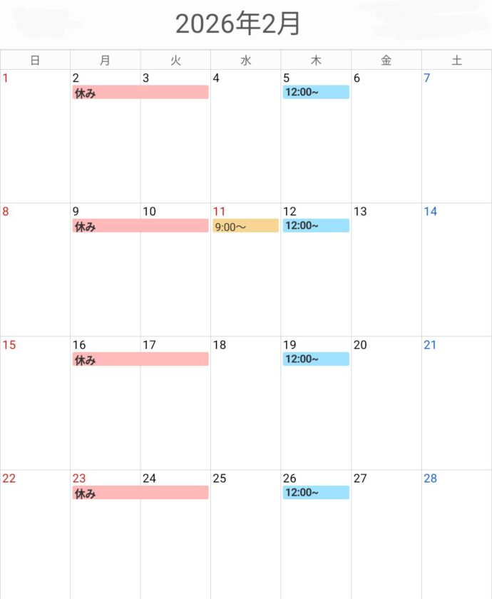 2月の営業日について
